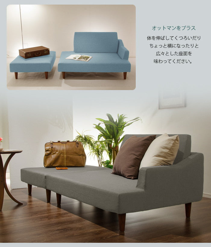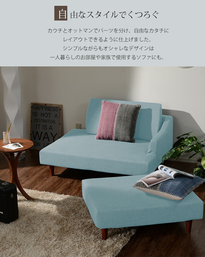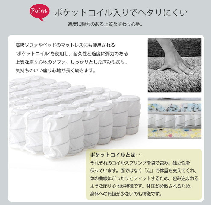 | 商品説明 | コンパクトでもゆったりすわれるポケットコイル入りカウチソファ 安心の日本製 オットマンつき |