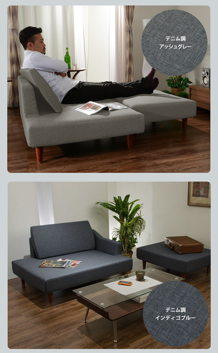 | 商品仕様 | 【商品名】 和楽カウチソファ「SENAMI」 【生地】 デニム調生地 【サイズ】 W1900×D880×H410?695mm (150mm脚) 座面奥行1200mm オットマンのみ770mm 肘の高さ135?225mm 座面厚み185mm ※脚を装着すると15mm程度奥に入り込むため高さが15mm低くなります。 【梱包サイズ】1211×411×891mm |