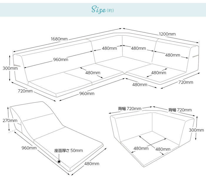 | 商品仕様 | 商品説明 【サイズ(約)】 1P:幅480×奥行720?960×高さ270?300mm (座面高50mm/座面奥行480mm) 2P:幅960×奥行720?960×高さ270?300mm (座面高50mm/座面奥行480mm) コーナー:幅720×奥行720×高さ300mm (座面高50mm/座面奥行480mm) ※一つ一つ手作りのため、若干の個体差があります。 予めご了承ください 【材質/生地】 中材:ウレタン 生地:ポリエステル100% 【生産】日本製 ※カバーは輸入品 【梱包サイズ】 二個口でのお届けとなります。 (約)660×420×480mm×2個 |