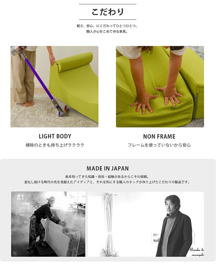 | 商品仕様 | 【商品名】 A999自由自在座椅子 【サイズ】 幅:1050mm(最小) 1600mm(最大) 奥行:600mm(最小) 860mm(最大) 高さ:510mm(最小) 835mm(最大) 【素材】 ウレタン・ポリエステル(カバー) 【製造国】日本(カバー:輸入品) 【機能】 レイアウト自由でお好きなカタチに。 【梱包サイズ】 (約)490×330×740mm |