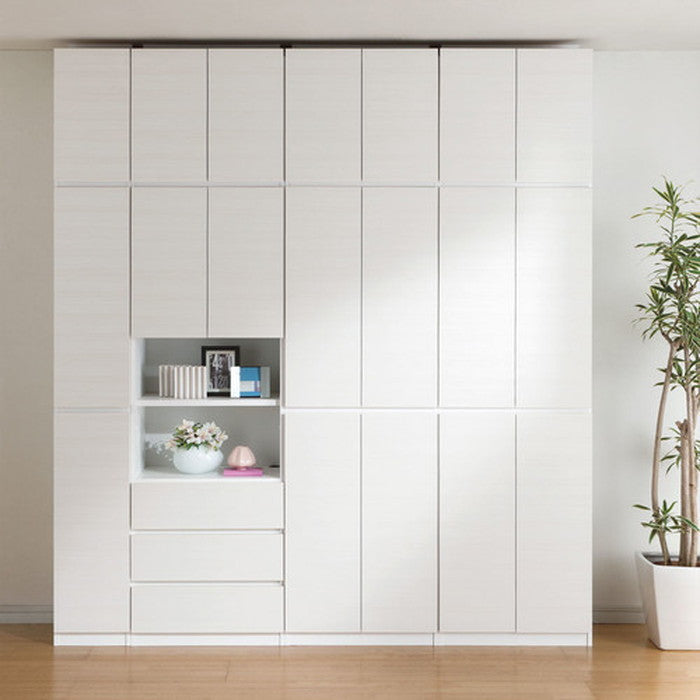 | 商品説明 | 家族にやさしいリビング壁面収納 【PORTALE】(ポルターレ) 壁一面を有効活用して、すっきり高級感のあるリビングに変える大型収納シリーズです。 安心・安全なやさしい機能と、インテリア性のあるデザインが魅力です。 やさしい白木目がお部屋を圧迫することなく明るく爽やかにしてくれます。 すっきりおけるホワイトは、やさしい木目で清潔感があります。 ○耐震ラッチ 地震などの振動で扉が開くのを防いでくれる安全機能です。 ○静かな開閉 扉にはダンパーが付いて、ゆっくり静かに閉まる優しい仕様です。 ○扉のデザイン 手に優しい丸みのあるフォルムです。引手がないのでスッキリしています。 ○巾木よけ 巾木をよけ、壁にぴったり設置できます。 ○配線穴 全ての移動棚の後ろのスキマから、配線を通せます。 また、側板の配線穴から連結したアイテムの中を通してスッキリ配線することができます。 移動棚耐荷重:10kg 中棚耐荷重:10kg 地板耐荷重:10kg 移動棚4枚 ※別売り棚板のお取り扱いございます。詳しくはお問い合わせください。 特殊加工 扉:木口ラッピング ピッチ30mm ※ピッチとは棚の間隔のことです。 ・組み立て式 この商品はF☆☆相当です。 |