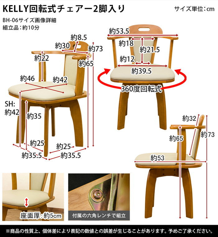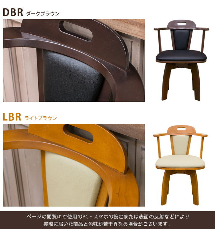 | 商品説明 | こちらの商品は佐川急便にて配達になります ◆離島への発送は出来ません KELLY 回転式チェア 2脚入りです 座面は360度回転します クッションの張り材はPVC(合成皮革)を使用しているのでお手入れし易いです 背もたれは身体を包むように丸みを帯びています ダークブラウン(DBR)とライトブラウン(LBR)の2色展開です |