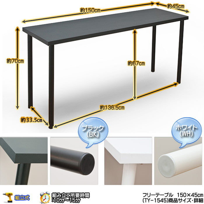 フリーテーブル 150×45 BK/WH ブラック ホワイト sk-ty1545 店舗 カフェ ラウンジ ロビー ホテル 法人 文机 デスク 北欧 モダン 家具 インテリア ナチュラル テイスト 新生活 オススメ おしゃれ