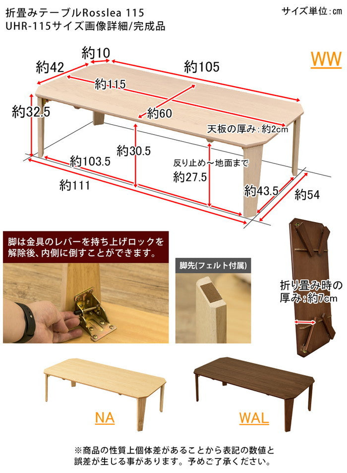 Rosslea折り畳みテーブル115 NA/WAL/WW ナチュラル ウォールナット ホワイトウォッシュ sk-uhr115 店舗 カフェ ラウンジ ロビー ホテル 法人 センターテーブル ローテーブル テーブル 北欧 モダン 家具 インテリア ナチュラル テイスト 新生活 オススメ おしゃれ
