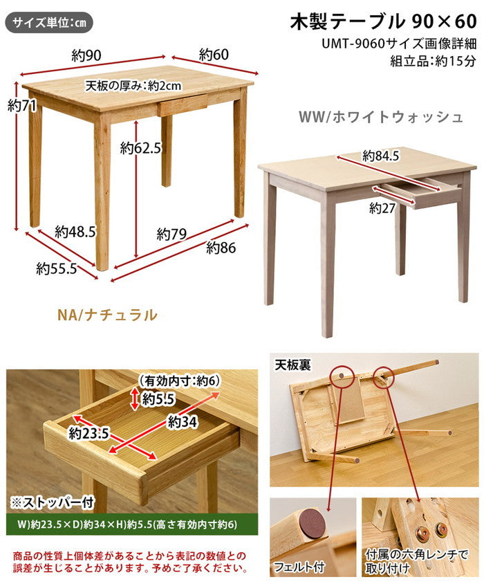 木製テーブル 90×60 NA/WW ナチュラル ホワイトウォッシュ sk-umt9060 店舗 カフェ ラウンジ ロビー ホテル 法人 文机 デスク 北欧 モダン 家具 インテリア ナチュラル テイスト 新生活 オススメ おしゃれ