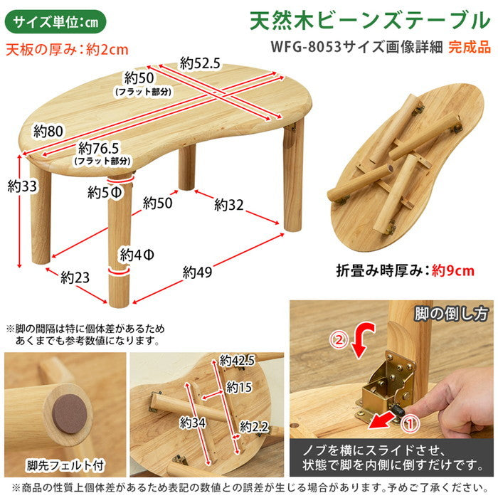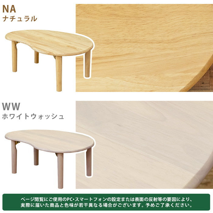 | 商品説明 | 天然木ビーンズテーブルです 豆みたいな形をした可愛い天板です 脚は折りたたみ出来ます ナチュラル(NA)、ホワイトウォッシュ(WW)の2色展開です(木目は全て異なります) |