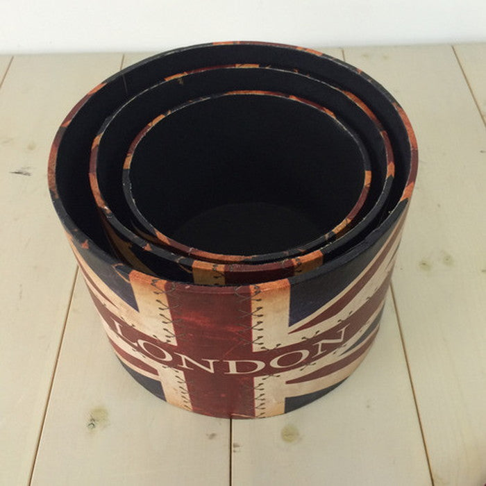 帽子入れ風 丸型ボックス 小物入れ 収納箱 ユニオンジャック S・M・L各1セット sun-4860490s1 店舗 カフェ ラウンジ ロビー ホテル 法人 収納ケース ボックス 押入れ収納 収納 家具 北欧 モダン 家具 インテリア ナチュラル テイスト 新生活 オススメ おしゃれ
