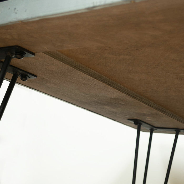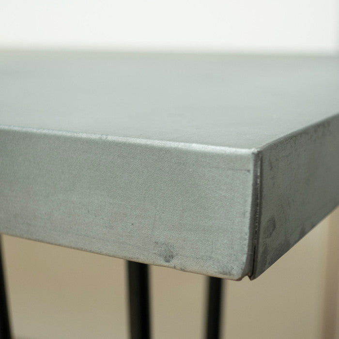 | 素材 | ■生産地:中国 ■素材・成分:天板:亜鉛 クリア塗装仕上げ(下地:古材) 脚部:スチール 黒皮風塗装仕上げ 天板の仕様 天板全体にエイジング加工(錆び調の斑点)を施しております。 |