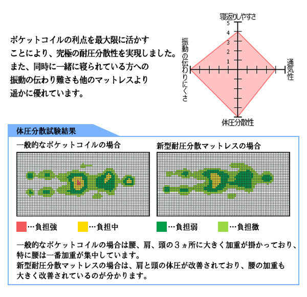 | 商品説明 | ホテルデザインベッド セミダブル 超体圧分散ポケットコイルマット付き ■商品説明 ■フレーム寸法/幅120×奥行206×高さ92cmMH約51.7cm ■マットレス寸法/幅122×奥行197×高さ23cm ■本体主材/プリント化粧板 ■マットレス主材/1.9mmポケットコイルスプリング(コイル数630個)、40tブロックウレタンフォーム、ポリエステル綿、ポリエステルポリウレタンフォーム混合2Wayストレッチ張地、両面多針キルティング加工 ■生産国 本体/日本マットレス/日本 ※こちらの商品はお客様組立商品となります。 ※大型商品の為日時指定不可となります。 |