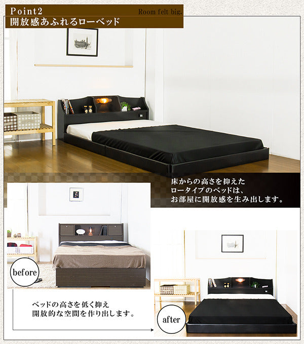 棚 照明 コンセント付き デザイン フロアベッド ダブル ボンネルコイルスプリングマットレス付 to-10-320-d-108165 店舗 カフェ ラウンジ ロビー ホテル 法人 フレーム マットレスセット ベッド 北欧 モダン 家具 インテリア ナチュラル テイスト 新生活 オススメ おしゃれ