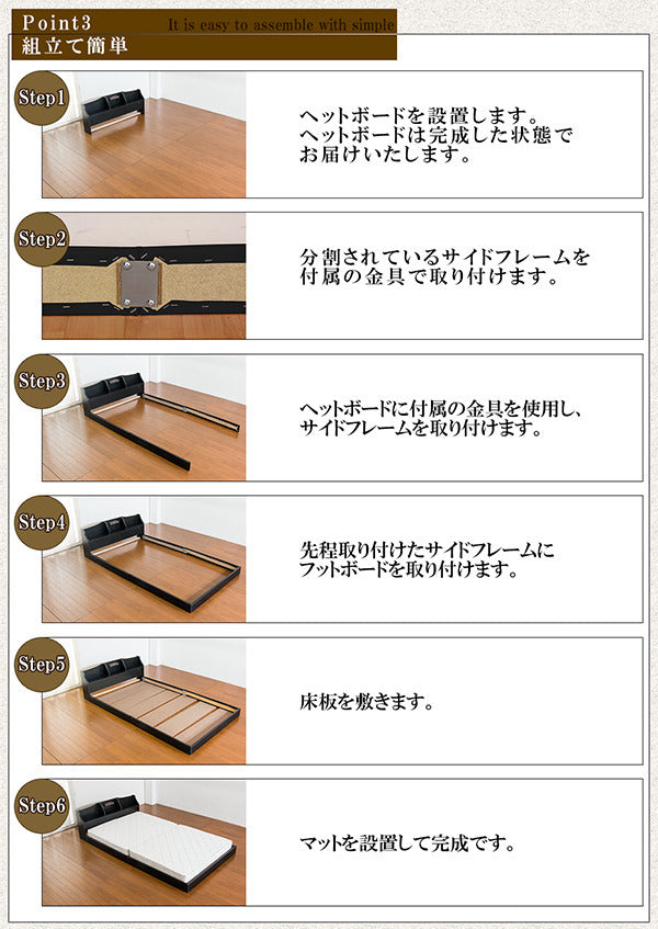 | 商品説明 | デザインフロアベッド セミダブル マットレス付き ■商品説明 ■フレーム寸法/幅125×奥行216×高さ52cmMH約19cm ■マットレス寸法/幅120×奥行195×高さ17cm ■本体主材/プリント化粧板、白熱灯(10W)1灯、1口コンセント(1200W) ■マットレス主材/2.1mmボンネルコイルスプリング(コイル数330個)、2.2mmポケットコイルスプリング(コイル数98個)、ウレタン、フェルト、ポリエステル、両面多針キルティング加工 ■生産国 本体/日本マットレス/中国 ※こちらの商品はお客様組立商品となります。 ※大型商品の為日時指定不可となります。 |