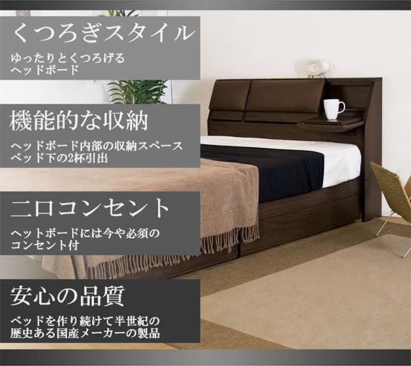 | 商品説明 | 背もたれ付きベッド セミダブル 日本製ボンネルコイルマットレス付き ■商品説明 ■フレーム寸法/幅121×奥行215×高さ80cmMH約43cm ■引出し内寸/大:W約96×D約40×H約10cm、小:W約90×D約35×H約10cm ■マットレス寸法/幅120×奥行195×高さ18cm ■本体主材/プリント化粧板、2口コンセント(1500W) ■マットレス主材/2.5mmボンネルコイルスプリング(コイル数264個)、ウレタンフォーム、フェルト、ポリエステル綿混合張地、両面多針キルティング加工 ■生産国 本体/日本マットレス/日本 ※こちらの商品はお客様組立商品となります。 ※大型商品の為日時指定不可となります。 |