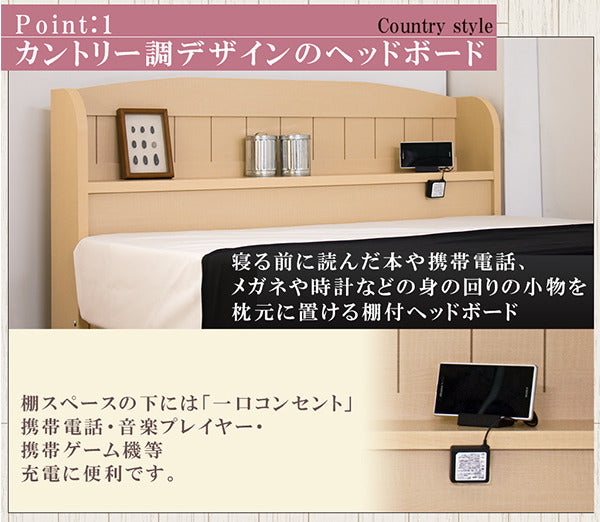 棚 コンセント 引き出し付きカントリー調ベッド ダブル SGマーク付国産ボンネルコイルスプリングマットレス付 to-10-a322-d-10816b 店舗 カフェ ラウンジ ロビー ホテル 法人 フレーム マットレスセット ベッド 北欧 モダン 家具 インテリア ナチュラル テイスト 新生活 オススメ おしゃれ