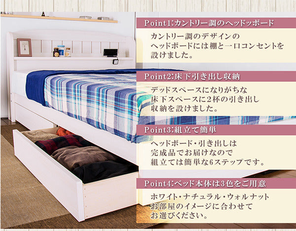 棚 コンセント 引き出し付きカントリー調ベッド シングル ポケットコイルスプリングマットレス付 to-10-a322-s-108517 店舗 カフェ ラウンジ ロビー ホテル 法人 フレーム マットレスセット ベッド 北欧 モダン 家具 インテリア ナチュラル テイスト 新生活 オススメ おしゃれ